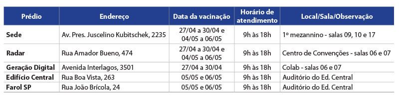 Veja o cronograma completo de vacinação nos prédios do banco em São Paulo
