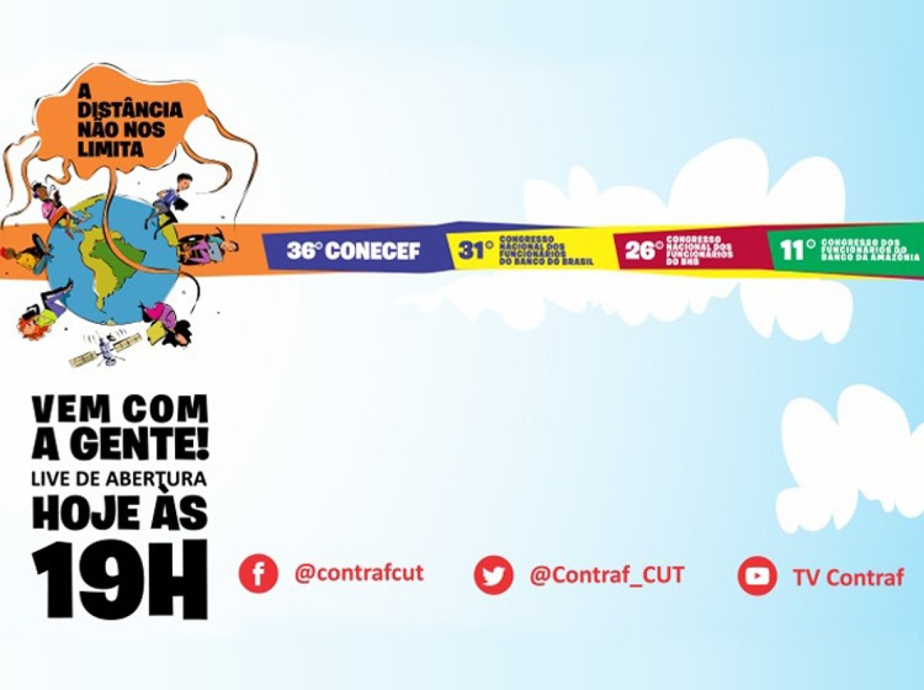 Debates do 36º Congresso Nacional dos Empregados da Caixa Econômica Federal (Conecef), que ocorre neste sábado 11, e do 31º Congresso Nacional de Funcionários do Banco do Brasil (CNFBB), que será realizado no domingo 12, serão transmitidos pelas redes sociais da Contraf-CUT: no Facebook, no Twitter e no Youtube. A abertura solene dos dois congressos, realizada de forma conjunta, às 19h desta sexta-feira 10, também está sendo transmitida pelas redes da Contraf-CUT. Assista e participe!
