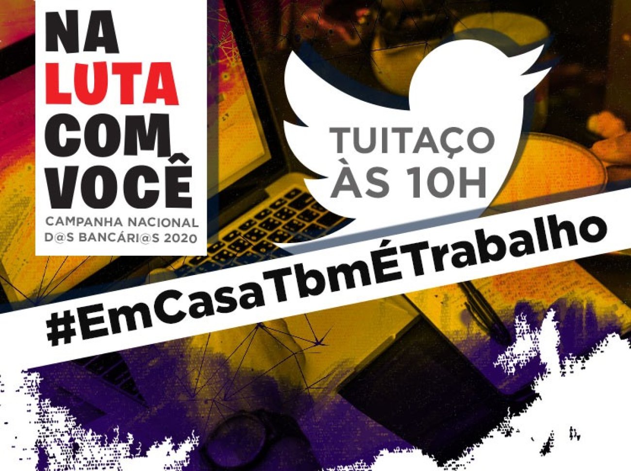 A primeira mesa da Campanha dos Bancários 2020 será nesta terça-feira 4 e discutirá o regime de home office. Para pressionar os bancos e mobilizar a categoria, será realizado um tuitaço no mesmo dia. A partir das 10h de terça-feira 4 os bancários deverão usar nas redes sociais a hashtag #EmCasaTbmÉTRabalho.