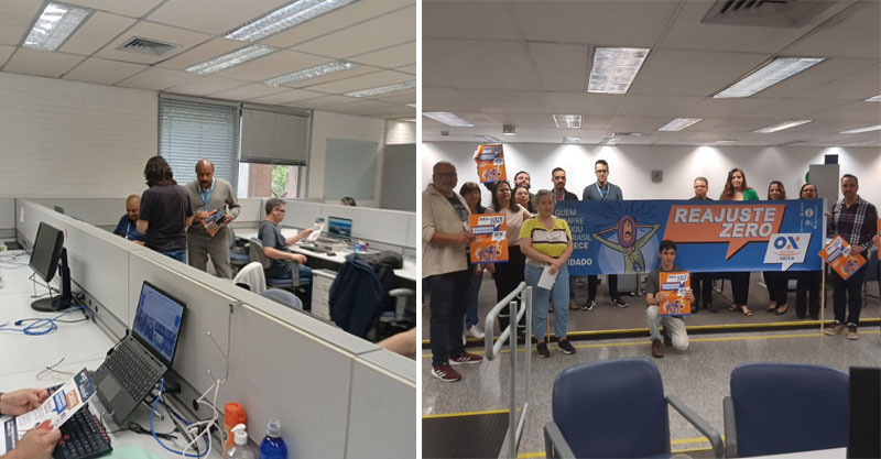 “Temos feito reuniões todos os dias nos locais de trabalho e nesta quinta na região central para explicar aos empregados o estagio da negociação e cobrar da Caixa para que apresente uma proposta na próxima rodada que ocorre na próxima semana. Já foram três rodadas e desde o início já apresentamos a nossa reivindicação que é de reajuste zero e que a Caixa arque com a sua responsabilidade com o Saúde Caixa. Quem sempre cuidou do Brasil, merece ser cuidado e os empregados de todo o país aguardam a proposta da Caixa, e que ela seja de Reajuste Zero”, diz Luiza Hansen, diretora do Sindicato e empregada da Caixa.
