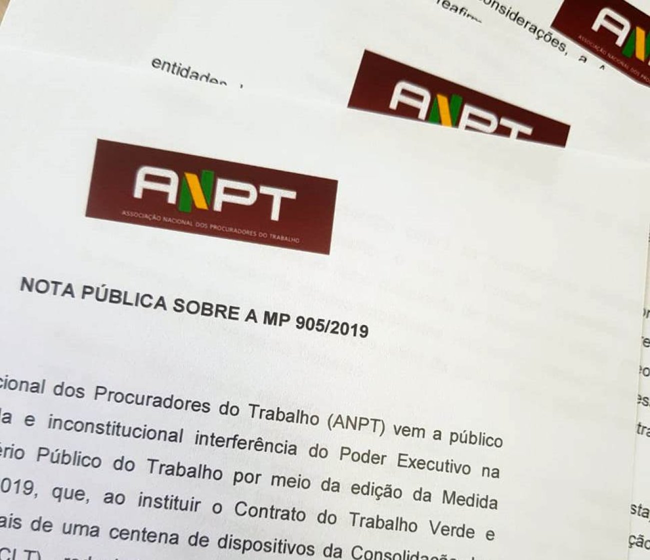 A Associação Nacional dos Procuradores do Trabalho (ANPT) vem a público repudiar a indevida e inconstitucional interferência do Poder Executivo na atuação do Ministério Público do Trabalho por meio da edição da Medida Provisória nº 905/2019, que, ao instituir o Contrato do Trabalho Verde e Amarelo e alterar mais de uma centena de dispositivos da Consolidação das Leis do Trabalho (CLT), reduzindo novamente direitos de trabalhadores brasileiros, busca interferir na eficácia e força vinculante dos termos de ajuste de conduta firmados pelo MPT (artigo 28 da MP, que modifica o artigo 627-A da CLT) e na destinação de multas e penalidades aplicadas em ações civis públicas e em termos de ajustes de conduta firmados pelo MPT em todo o território nacional (artigo 21 da MP).