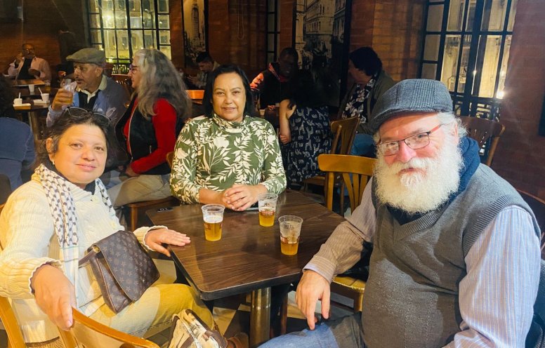 O projeto Sons da Democracia retornou ao Café dos Bancários na noite da última sexta-feira (31), reunindo público e artistas em um encontro de arte, solidariedade e luta por direitos. Com o tema “Palestina Livre: do Rio ao Mar”, o evento ocupou a sede do Sindicato dos Bancários de São Paulo, Osasco e Região, no centro da capital paulista, com debates, performances e manifestações culturais.