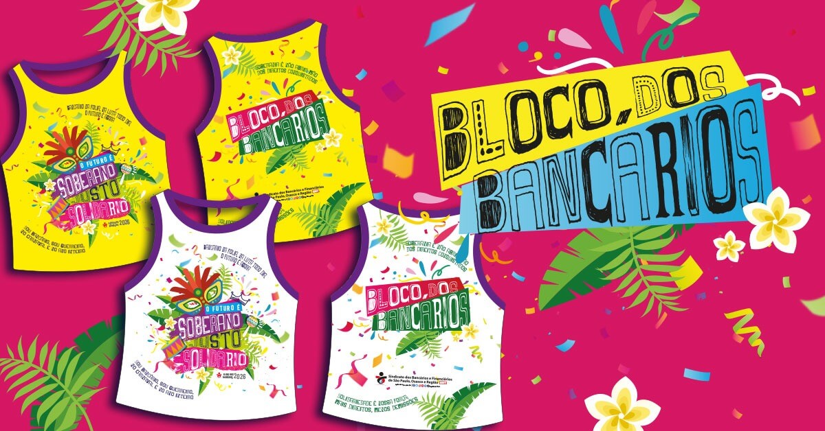 Sócios e sócias do Sindicato podem retirar de graça o abadá do Bloco dos Bancários 2026. Para não sócios, o abadá sai por R$ 40.