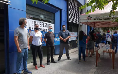 Durante esse tempo todo o Sindicato não arredou pé da luta. Mesmo nos momentos mais difíceis, quando parecia ser impossível resistir sem poder ir à rua, protestar. O Sindicato inovou, como inovou sempre na sua história de um século de existência. Modernizou-se, ocupou redes sociais ao mesmo tempo em que percorria com cuidado e atenção locais de trabalho para cobrar saúde, segurança e preservar vidas durante a pandemia. Realizou eleições e assembleias virtuais sempre focado em manter, mesmo diante do necessário isolamento social, a participação dos bancários na entidade. Não abandonou nem por um dia a luta pelos direitos trabalhistas, pela aposentadoria, pelos bancos públicos, pelas empresas públicas fundamentais ao Brasil e aos brasileiros. E por isso mesmo tão atacados pelos governos entreguistas, vendidos ao mercado, que tomaram o país desde 2016.